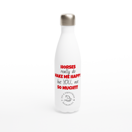 Horses Make Me Happy: White 17oz Stainless Steel Water Bottle